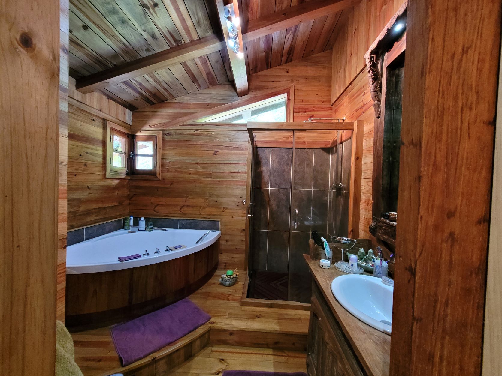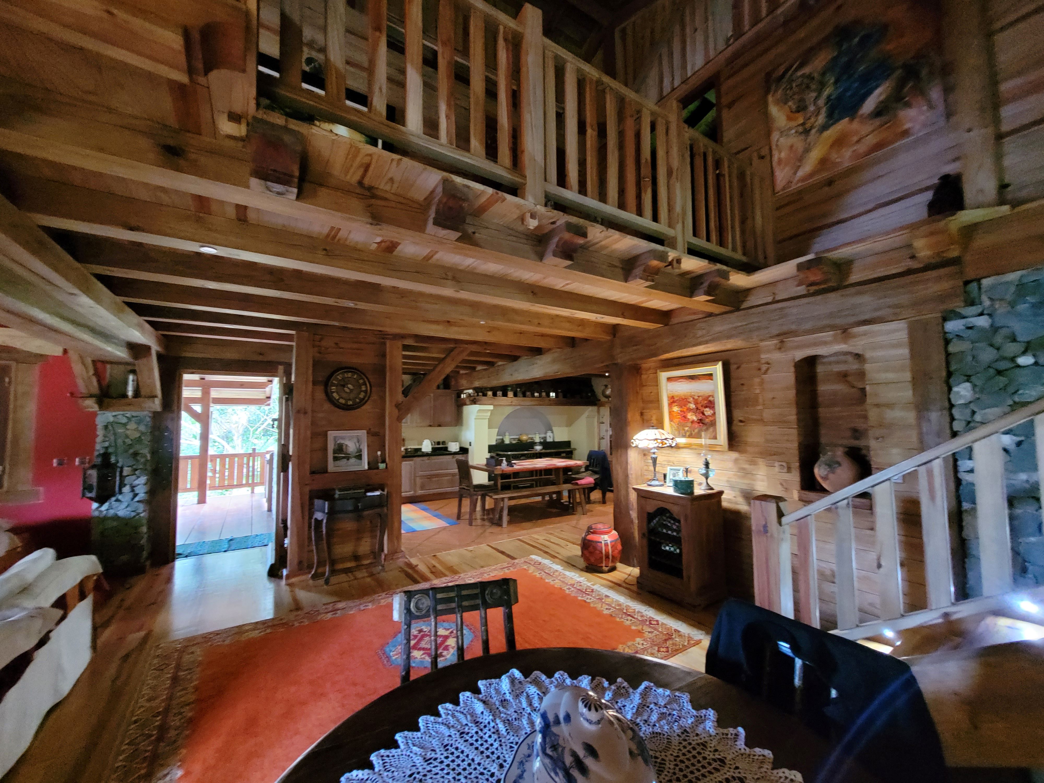 In Farino, Route du Parc des Grandes Fougères, auf einem 57280 m2 großen bewaldeten und erschlossenen Grundstück, führt die königliche Gasse zu einem prächtigen 240 m2 großen Chalet. Der Charme und die Authentizität dieses herrlichen 4-Zimmer-Chalets mit Holz- und Trockensteinverkleidung und Kohu-Parkettboden, das von einem Handwerker gebaut wurde, besteht aus einem geräumigen Wohnzimmer mit einer Einbauküche, die zum Wohnzimmer mit Kamin führt, einer Waschküche und einer separaten Toilette. Ein angrenzender Carport führt zur Küche. Der erste Stock, der teilweise für den Schlafbereich reserviert ist, besteht aus einem Flur, einem Badezimmer, einer separaten Toilette, 2 Schlafzimmern, von denen eines 33 m2 groß ist, und einem 3. Schlafzimmer, das derzeit als Büro genutzt wird. Für ein zweites 100 m2 großes Chalet, früher eine Gîte (Unterkunft), die derzeit monatlich auf einem ca. 2100 m2 großen Grundstück vermietet wird, wurde ein Miteigentumsplan erstellt. Die Fläche dieses Grundstücks ermöglicht auch eine Aufteilung in 2 Hektar, was im oberen Teil möglich ist. Dieses Grundstück mit seinen 100 Kaoris und seiner Quelle bietet großes Potenzial für Agroforstwirtschaft, Permakultur und Kaffeeanbau. Derzeit werden Kaffeebäume der Sorten Arabica, Robusta und Leroy angepflanzt. Angesichts der Anzahl der Besucher des Parc des Grandes Fougères könnte eine Gîte (Unterkunft) mit mehreren Bungalows in Betracht gezogen werden.