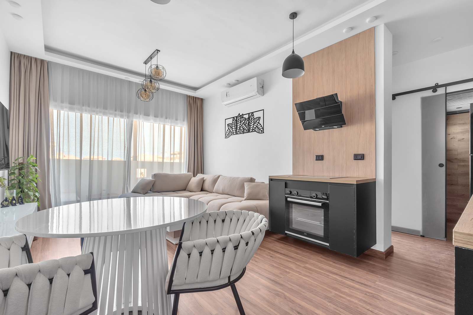 Wohnzimmer mit offener Küche